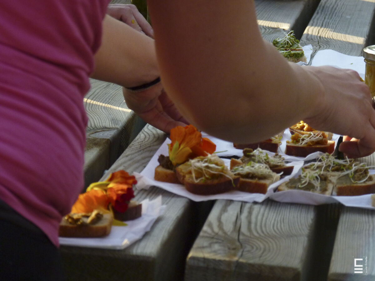 Visites diurne et nocturne du jardin animées par un conteur herboriste, entrecoupées d’une dégustation végétale, d’un atelier de light-painting, d’expériences scientifiques sur la couleur, d’une découverte audiovisuelle du réseau des jardins collectifs de l’agglomération de Pau, et d’un repas partagé.